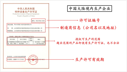 大陆境内生产企业特种设备生产许可