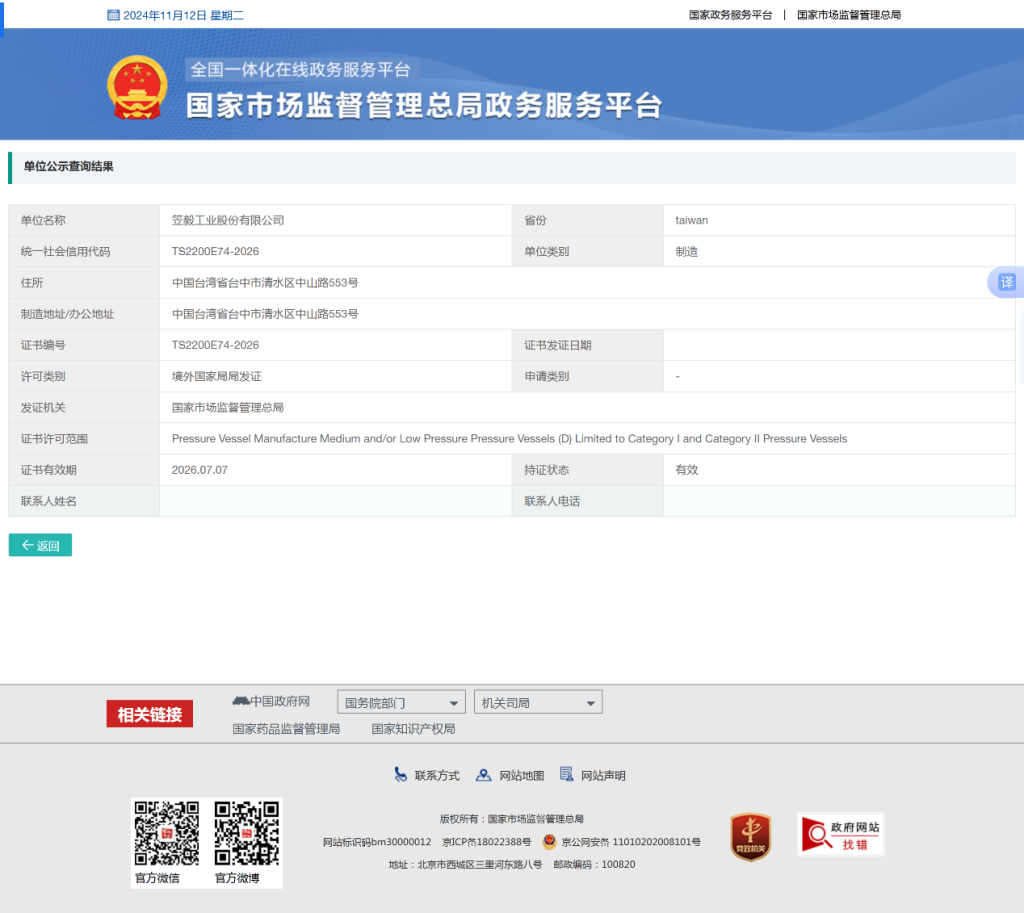 通过以上查询验证,可以得知生产厂家提供的特种设备生产许可是否真实有效,只有具备真实有效的特种设备生产许可,才有资格制造和供应合法的气压罐产品。